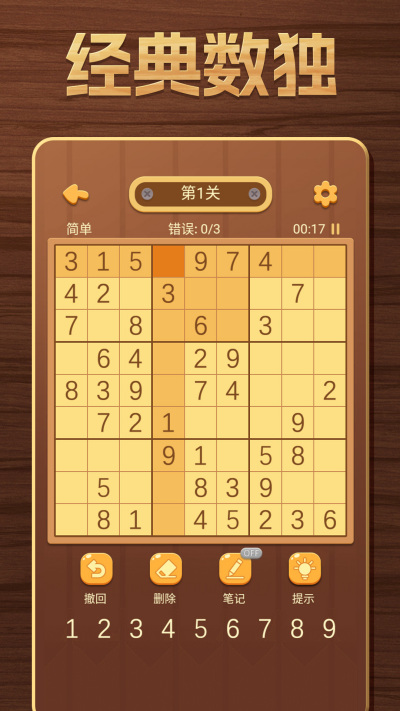 开心数独又称“填数游戏”是一款超考验推理能力数字类益智游戏。玩家需要根据盘面上的已知数字,利用规则和推理,在其他空格中填入数字,使每个数字在每一行、每一列和每一宫中都只能出现一次。