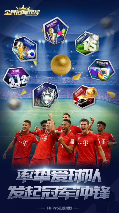 《全民冠军足球》是由FIFPro官方正版授权的一款策略经营足球游戏,拥有2000+名真实球员实名登场。游戏采用全球领先的惯性与动作捕捉技术以及真实球员参与动作录制。除球员外,还摇拥有皇马,拜仁等多家豪门俱乐部的授权。游戏独创了”英雄时刻”玩法,让玩家体验亲临比赛现场般的操作感受,是一款真正为全世界足球爱好者量身定制的高品质足球手游。