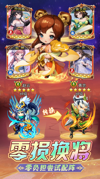 招募抽卡不花钱,轻松集齐稀有武将!进入游戏后,主公通过持续升级,可以获得共1000抽自选武将,主公可根据阵容需要,随心选择,一次抽个爽。搭建出最适合自己的阵容,轻松智斗!快来体验超值福利,享受抽卡的乐趣吧!