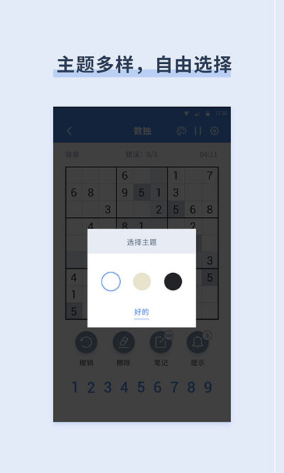 1 数独题目丰富,分简单,中级,困难,专家四个级别,不同等级的玩家可以自由选择