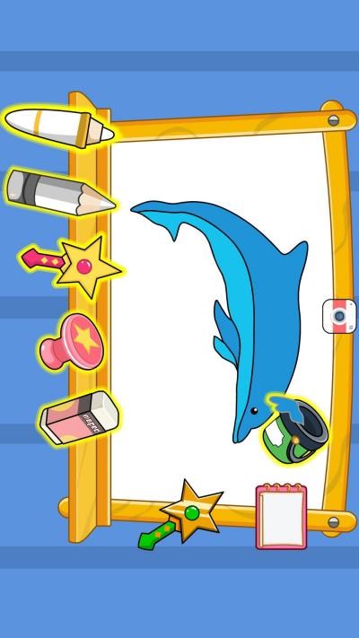 1.多种笔刷工具包括铅笔、蜡笔,其他工具有自动填色魔法棒、印章、橡皮擦、油漆桶和动画魔法棒,给图形上色后点击动画魔法棒可以播放作品。