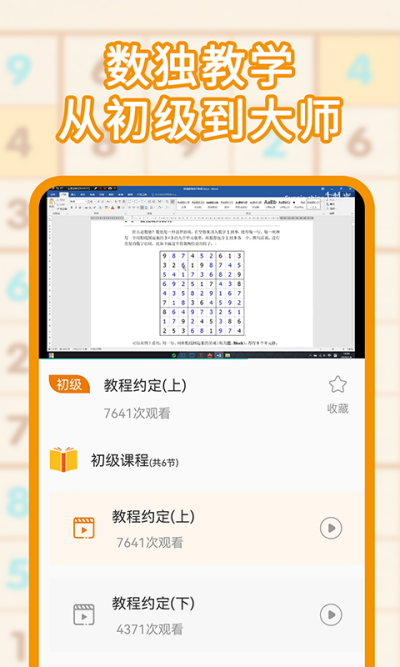 学习数独先要了解它: 数独是一种逻辑性的数字填充,须以数字填进每一格,而每行、每列和每个宫(即3*3的大格)有齐1至9所有数字。提供一部分的数字,使谜题有一个答案。