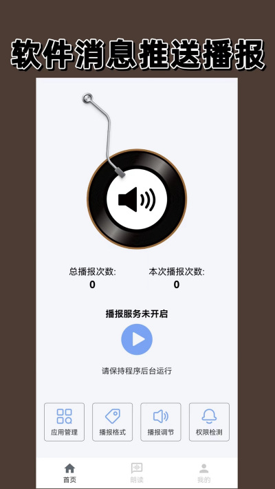 语音播报是一款多功能语音管理服务软件,包含了软件和app等软件信息管理,能够帮助用户实时接收信息内容,选择是否进行语音播放服务,选择朗读信息内容,让用户在这里快速了解信息内容,支持多场景使用,随时切换语言播放,需要的伙伴,快下载使用哦!