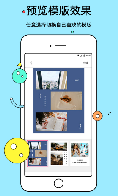 多套精美的模板轻松讲述每张照片的故事,支持一键分享。