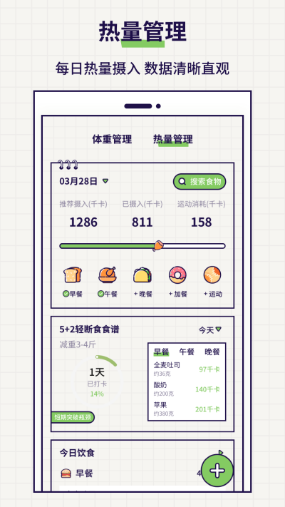 体重记录:用户可以随时记录自己的体重数据,并查看体重变化曲线图,了解减肥进度。
