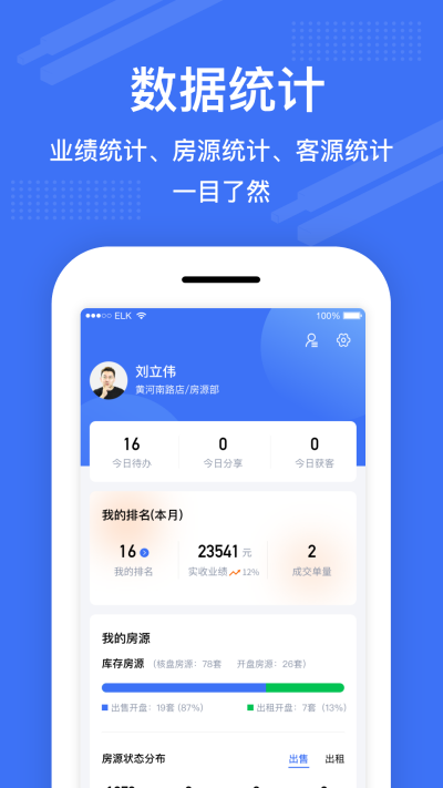 强管控、精细化管理,统一楼盘字典;商圈精耕、主营楼盘管理;房客维护标准化规则;规范合同实现电子签约;任务量化分解实时追踪;