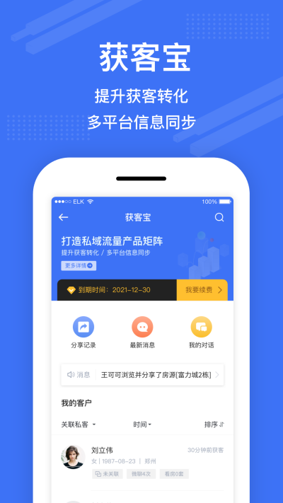 营销拓客+私域流量,企业官网+企业小程序;微信分享及时获客;同步安居客、幸福里、房天下、诸葛找房、抖音、快手等平台。