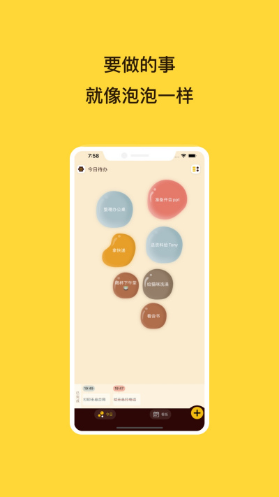 2、待办事项可设置不同的紧急程度,越重要的事,泡泡越大,也会被排在前面。