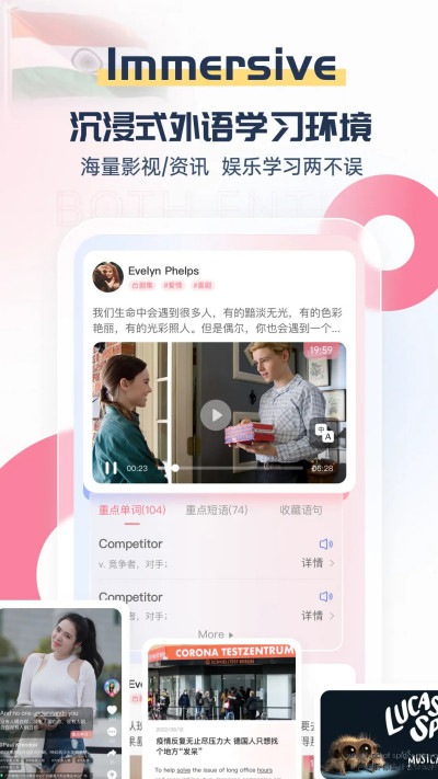 外文在线Diptok是一种英语新社交+英语短视频的泛娱乐沉浸式学习APP,国内首款将英语作为初始进行分级训练,运用大数据,推荐算法等AI技术,实现娱乐,社交,学习的精准匹配,全新的交互效果,为中国英语爱好者,学习者构建一个全新的纯英语社区与娱乐生活平台。