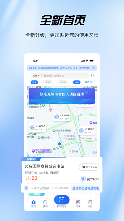 ? 站点详情:查看电站计费说明、服务电话等信息,实时获取充电终端状态,了解电站周边生态。