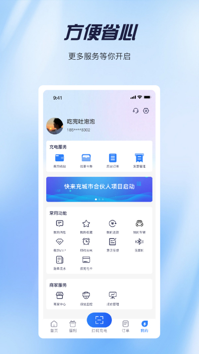 ? 扫码充电:扫描充电终端上二维码,快速启动充电,方便快捷。