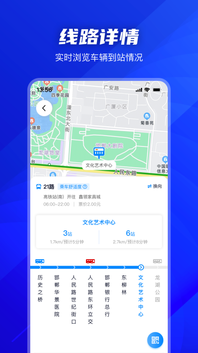 出行必备神器-坐公交,让您轻松掌握公交的实时位置:车到哪了,还有几站,需要多少分钟等一目了然。秒变出行达人,从此上班不迟到。