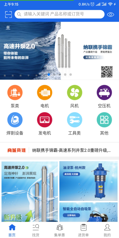 纳联机电为五金机电产品集单交易平台,涵盖泵类、电机类、风机类、空压机类、焊割设备、电动工具等8大类,上万款五金机电产品,一站式采购。