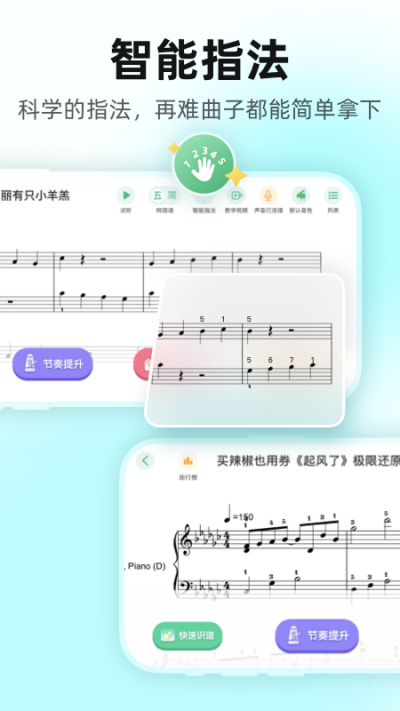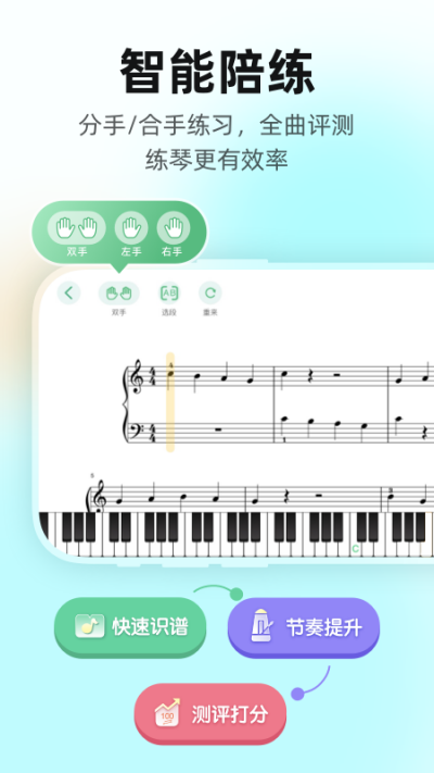 【智能曲谱】:智能曲谱全新上线,拥有一键切换简谱,调节速度,变换曲调等多项智能功能。