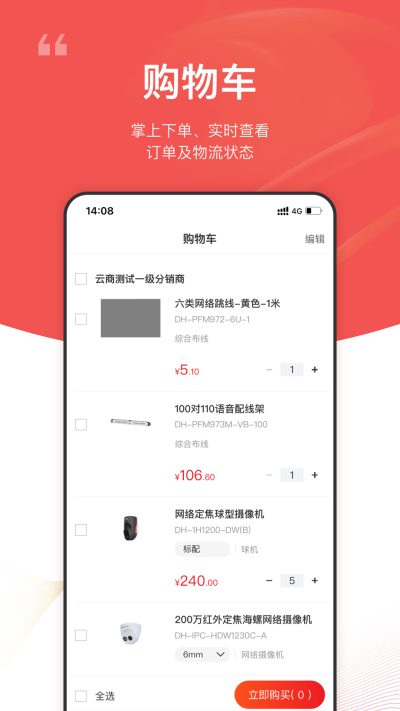 一款以大华分销类产品营销与相关服务为宗旨,提供客户注册、产品选型、配单、采购、技术指导、解决方案指导、订单状态跟踪、售后服务等全面覆盖售前、售中、售后各环节的业务应用。