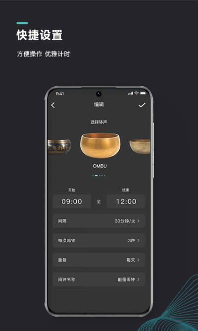 -?自定义开始时、结束时的提醒声音,包括播放次数及震动,能量钵的声音助你迅速进入状态;