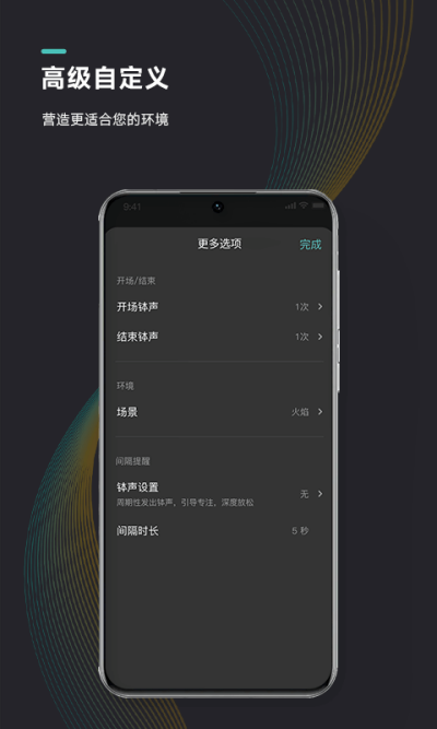 一个好的定时器可以让周期内的效果事半功倍,App的计时器提供了6大实用的的自定义选项: