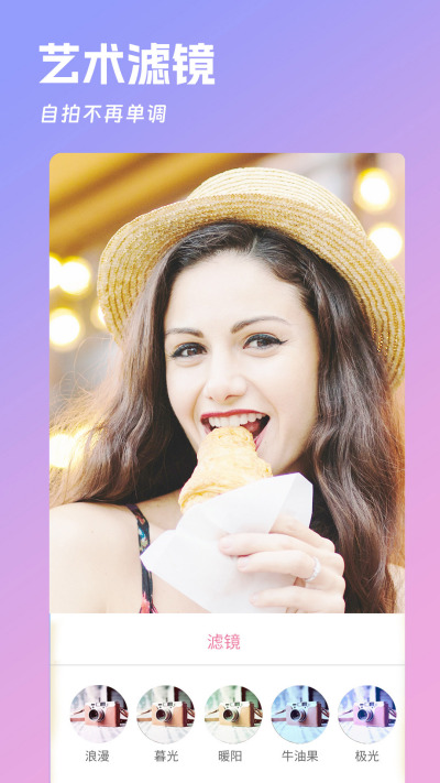 多种滤镜,可文艺、可萝莉、可平淡、可优雅,青春靓丽、烈焰女王轻松切换;从此每张自拍都是高冷逼格,元气满满。
