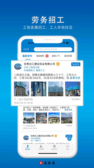 【公司招聘】实现建筑企业跨区经营招募当地建筑管理人才,应用提供详细的薪资待遇、工作环境、工程位置、等多岗位可供选择,为建筑人才提供本地详细有效的招聘信息,为建筑施工企业提供快捷可靠的招聘环境;