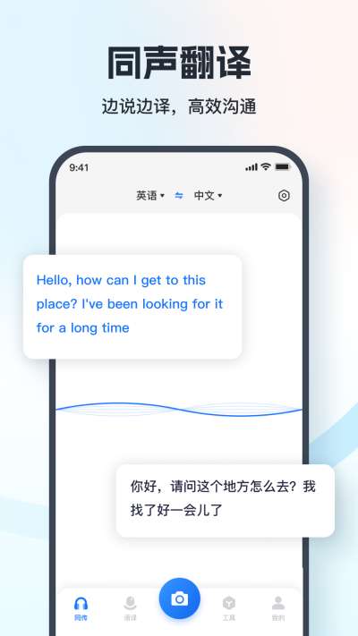 翻译相机是一款多功能的翻译软件,产品内置了高智能翻译模块,具备拍照翻译、同声传译、音频翻译、视频翻译和语音翻译等功能。翻译准确率高,处理速度快!同时产品包含了多种办公小工具,是一款简单易用的办公app!