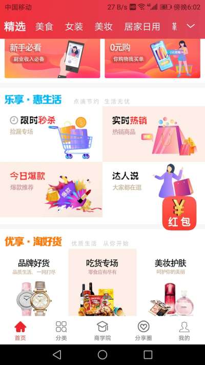 4.全面分类:包含了时尚女装、精品男装、精选鞋品、时尚箱包、海量美食、靓丽美妆等。精选单品、视频导购、今日疯抢、好货专场更有优质优惠券等你来拿。