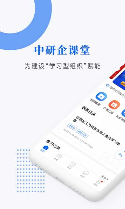 学员可以在APP在线听课、观看直播、任务学习、参加测评、查看学习报告。