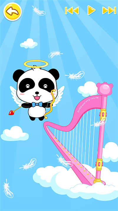 竖琴:熊猫天使是位伟大的演奏家,站在云端,为宝宝们演奏一曲曲动人心魄的歌曲。