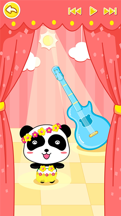 吉他:炫丽的舞台上,宝宝随着音乐翩翩起舞,点击舞台上方的装饰物,让你惊喜连连!
