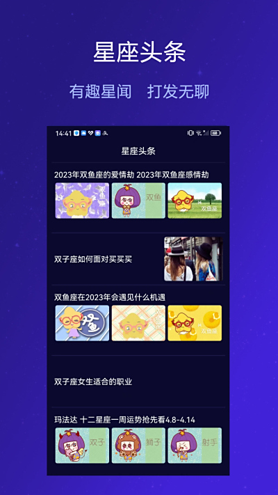 麦子星球是一款集星座运势查询、星座配对、星座分析、星座预测为一体的App,用户不仅可以查询每日的星座运势,还可以查看明日、本周、本月的星座运势,其中运势包含了综合运势、工作运势、爱情运势以及理财运势等,麦子星球包含丰富齐全的星座知识,详细的星座解析,教您避凶趋吉。随时随地了解你的星座运势、爱情运势以及投资理财运势,结合开运秘诀、幸运数字、幸运颜色,每天都好运连连!