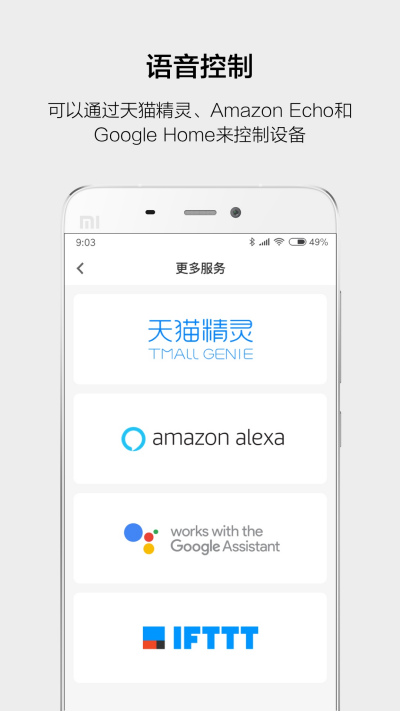 支持通过天猫精灵、Amazon Echo、Google Home等用语音控制智能设备