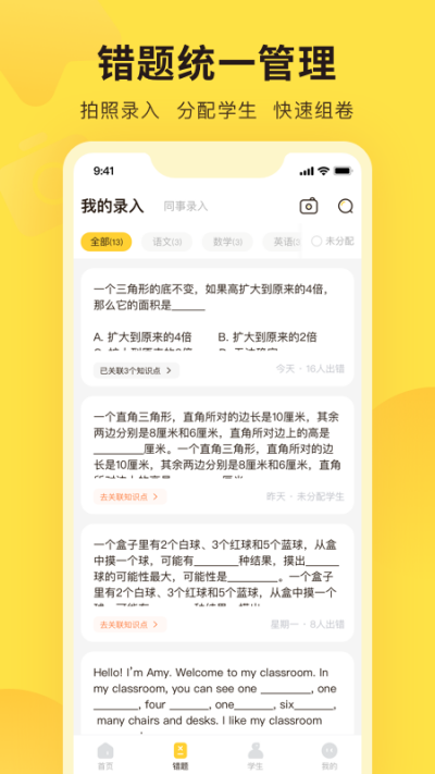 错题教练APP是一款专门方便老师给学生高效录入和整理错题的工具。