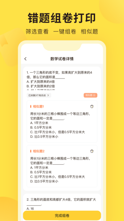 2)智能分析学生薄弱知识点,给学生高效、个性化出题组卷;