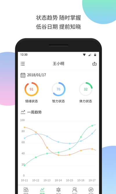 夏冰软件将人体生物节律和先进的科学技术相结合,推出了这款名为“生物钟”的APP,可以让我们更加方便的了解自己和好友每天的体力、智力和情绪状态,并给出科学合理的分析建议。