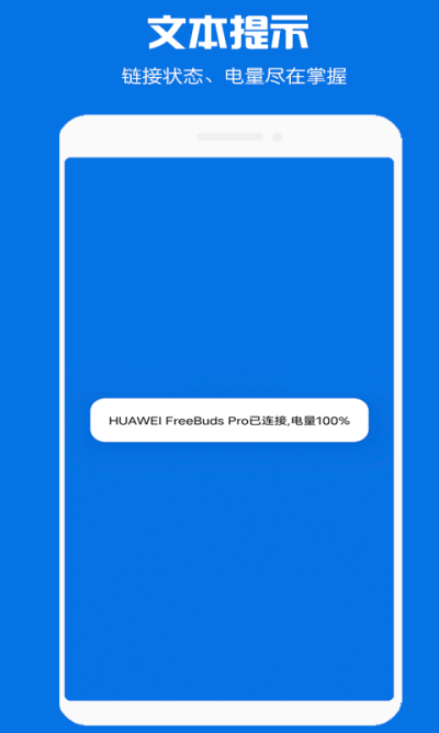 可通过弹框、toast提示、通知栏提示等方式提示蓝牙耳机的链接状态和电量变动情况。及时准确,方便快捷。弹框展示动画流畅,信息准确,可弥补蓝牙耳机不能弹框的遗憾