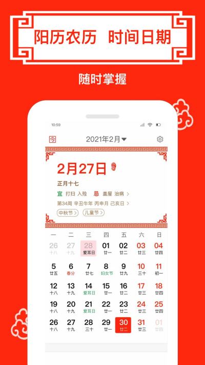 3、简洁实用,传承中国传统文化,打造优质体验的中国万年历日历;