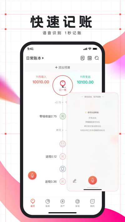 - 语音记账:智能识别文字归类,简单高效轻记账