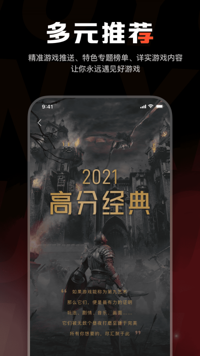 【多元的游戏推荐】精确的游戏推送、多样的游戏类型、独特的游戏标签……我们把游戏的魅力一览无遗的展示给你,目光所及之处,皆是精品