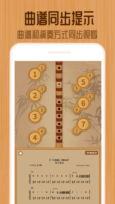 笛子是比较简单的民族乐器之一,让笛子成为您的启蒙乐器,手机就能演奏笛子。跟着笛子教练APP,短时间学会《生日歌》、《虫儿飞》等入门歌曲。