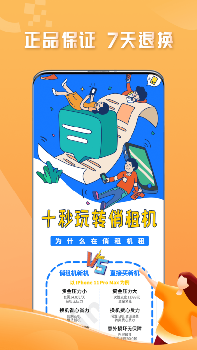 1、【全场正品 七天退换】:俏租机国资背景,信誉保证,精选值得信赖的大牌厂商合作,全场正品保障,用户还可尊享七天退换服务;