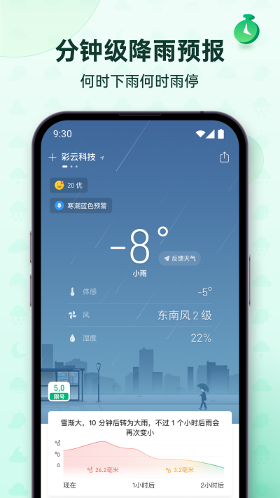 两小时内超精准的分钟级降水预报,及时调整自己和家人的出行计划。