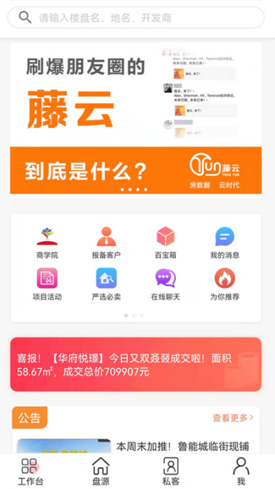 藤云APP致力打造成为一个高效、透明、完整的业务体系链工具,助力经纪人了解客户进展,轻松赚钱,帮助项目高效推盘,实现项目全掌控。