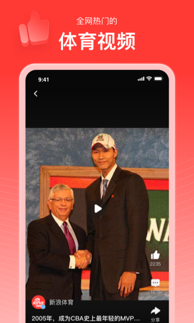 丰富的体育新闻、简单的阅读方式、全面的数据分析、奖品多多的直播间、专业的记者团队、高质量的网友评论、一目了然的赛事对阵,种种这些汇聚成了专注20年体育新闻报道的——新浪体育APP;