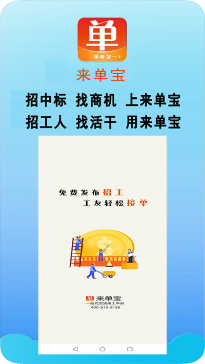 来单宝是中小微企业一站式数字化服务和赋能平台,包括但不限于灵活用工、招投标信息实时共享、带链接的短视频营销,以及知识产权、培训等业务模块,致力于为全国千千万万中小微企业、创业者和4亿蓝领(其中1亿建筑工程行业工人)服务和赋能。