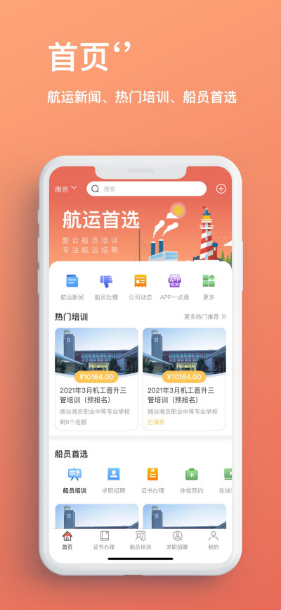 ——船员培训考试办证工作无忧。提供船员在线预约培训,全国百家海事院校任您选择,线上优质视频文本学习资源可供下载,全真模拟考试临考不慌,一键办理证书省心省时省力,海量企业公开招聘信息,就业有保障!