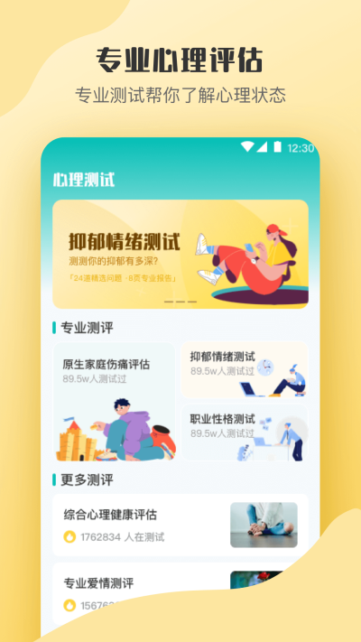 【心理测试】抑郁情绪测试、职业性格测试、抑郁测试、原生家庭伤痛评估等各类专业测试,帮你探索未知的自己。