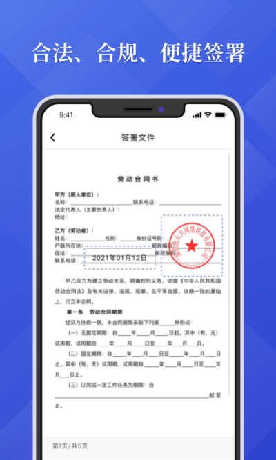 便捷:告别纸质合同,随时随地签署电子合同、查阅电子合同、下载电子合同。