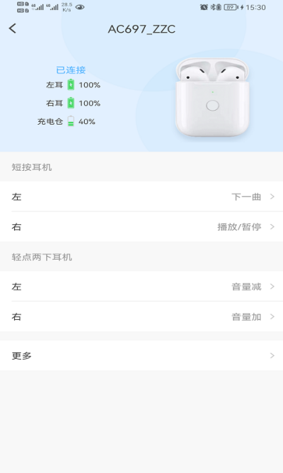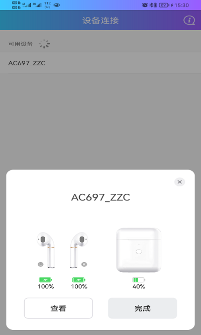 基于杰理蓝牙tws耳机的配套app,通过app可以进行设备的功能配置,细分功能为:设备连接管理、电量查看、名称修改、状态灯设置、操作方式设置、工作模式设置、麦克风设置等。