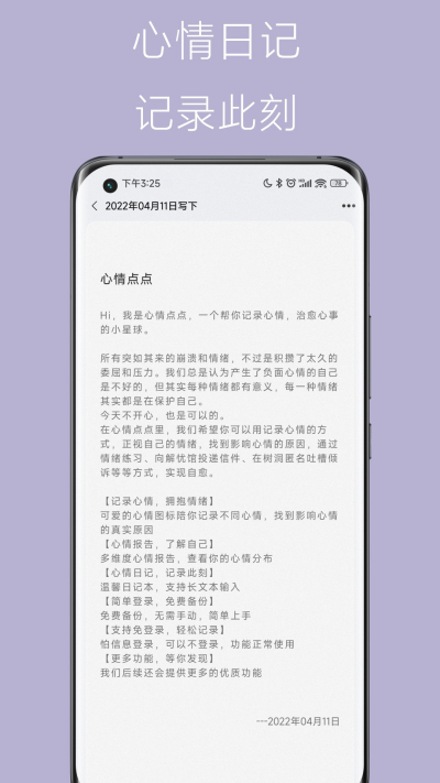 心情点点正在和大家一起成长,愿我们可以成为你们理想的那个APP。如果有建议或问题可联系我们