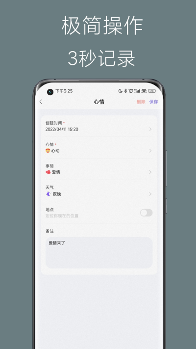 极简单的操作方式,只需要3秒就可以快速记录心情