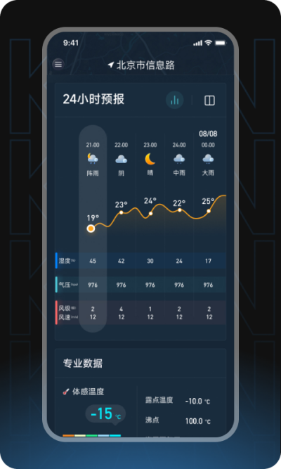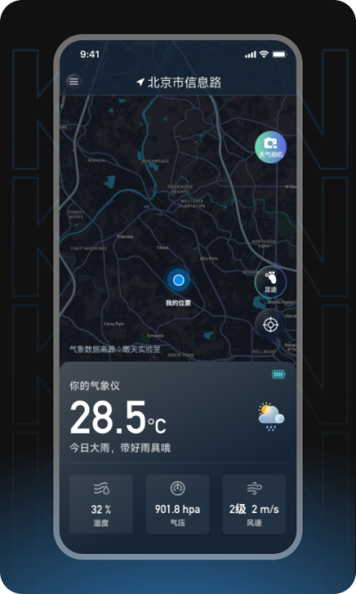 瞰天气是由天津瞰天科技有限责任公司专注于瞰天智能气象仪用户和户外用户定制的移动端软件产品。打造户外气象黑科技,露营徒步随身气象专家,让你实时掌握局地精准数据,家庭出行测一测,寓教于乐,给孩子播种一颗科学的种子。产品硬件端可单独使用,也可搭配APP端来进行设备绑定的互动使用,所记录的气象数据支持本地存储与云端存储,并支持社交分享。